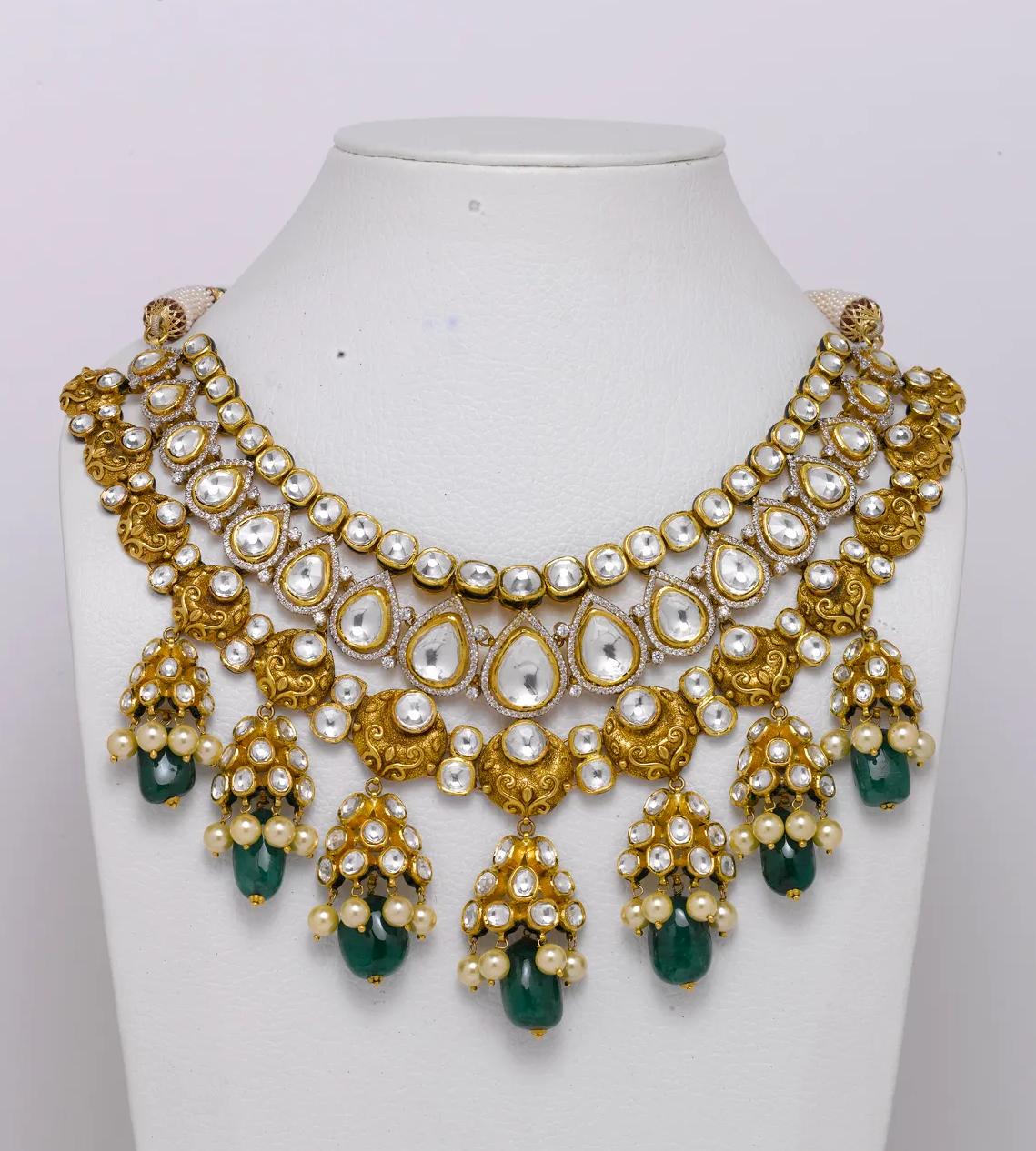 Kundan jewellery isn’t just about sparkle — it’s about tradition, craftsmanship, and timeless beauty. Rooted in royal heritage, Kundan pieces are known for their intricate designs and the way uncut gemstones are carefully set in gold or silver foil. Worn by brides, passed down through generations, or styled for special occasions, Kundan jewellery carries a regal charm that never goes out of fashion. Whether it’s a heavy necklace, delicate earrings, or a bold maang tikka, each piece feels like a work of art. It’s more than just jewellery — it’s a celebration of India’s rich history and your most cherished moments.