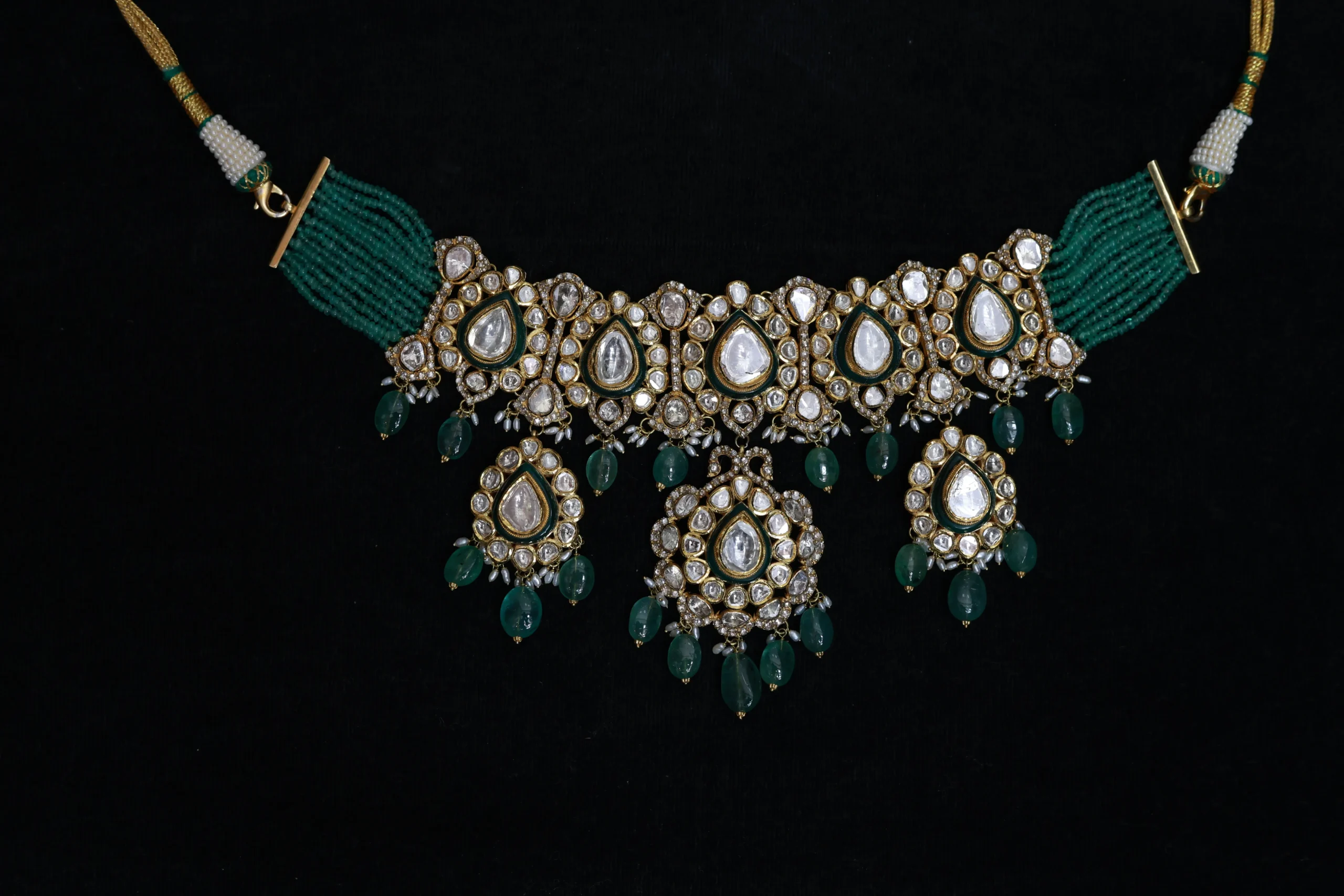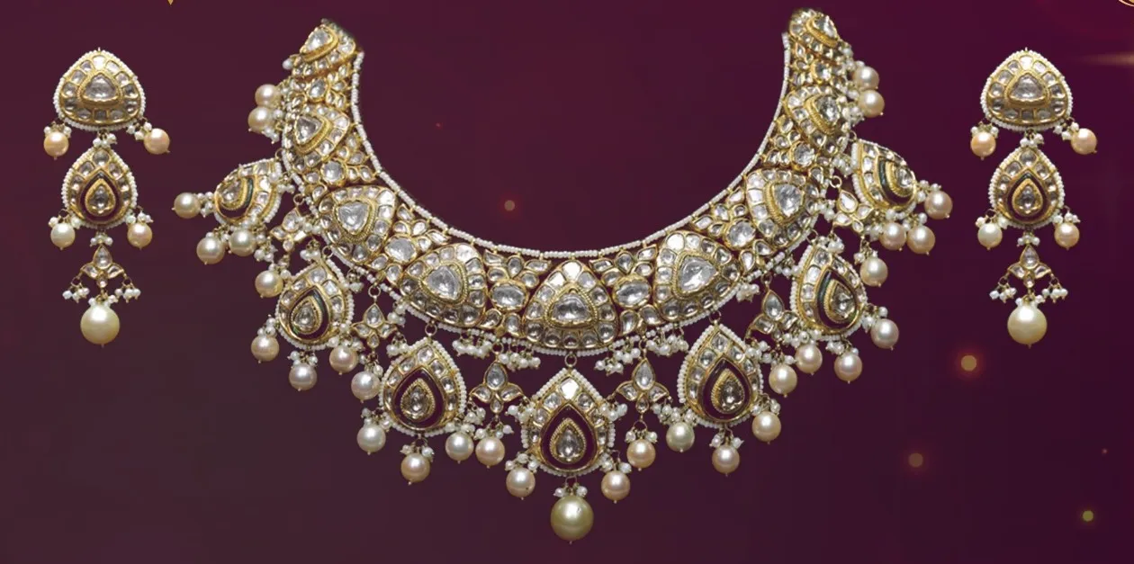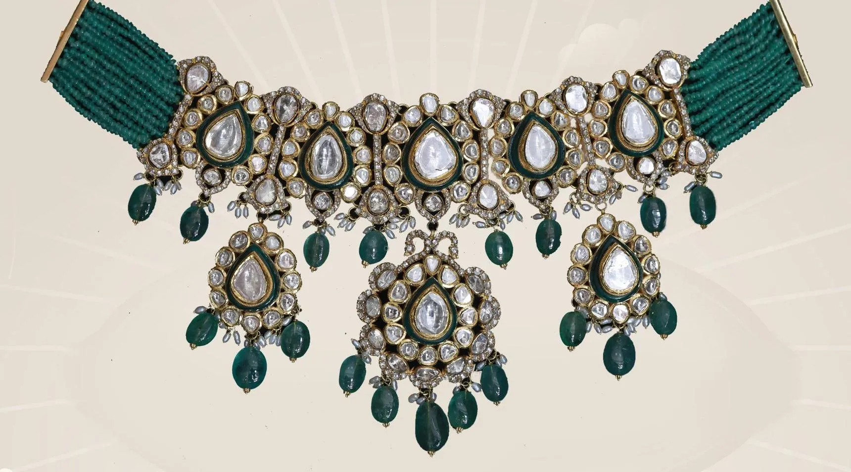 Vilandi jewellery, also known as Polki jewellery, is pure elegance wrapped in history. With its uncut diamonds set in intricate designs, Vilandi pieces have long been associated with royalty and grand celebrations. Each piece is handcrafted with incredible detail, making it not just jewellery, but a work of art. Often worn by brides or passed down as family heirlooms, Vilandi jewellery holds a sense of tradition and timeless beauty. Whether it’s a statement necklace, a stunning pair of earrings, or an ornate ring, these pieces shine with a raw, regal charm. It’s more than adornment — it’s heritage you wear.